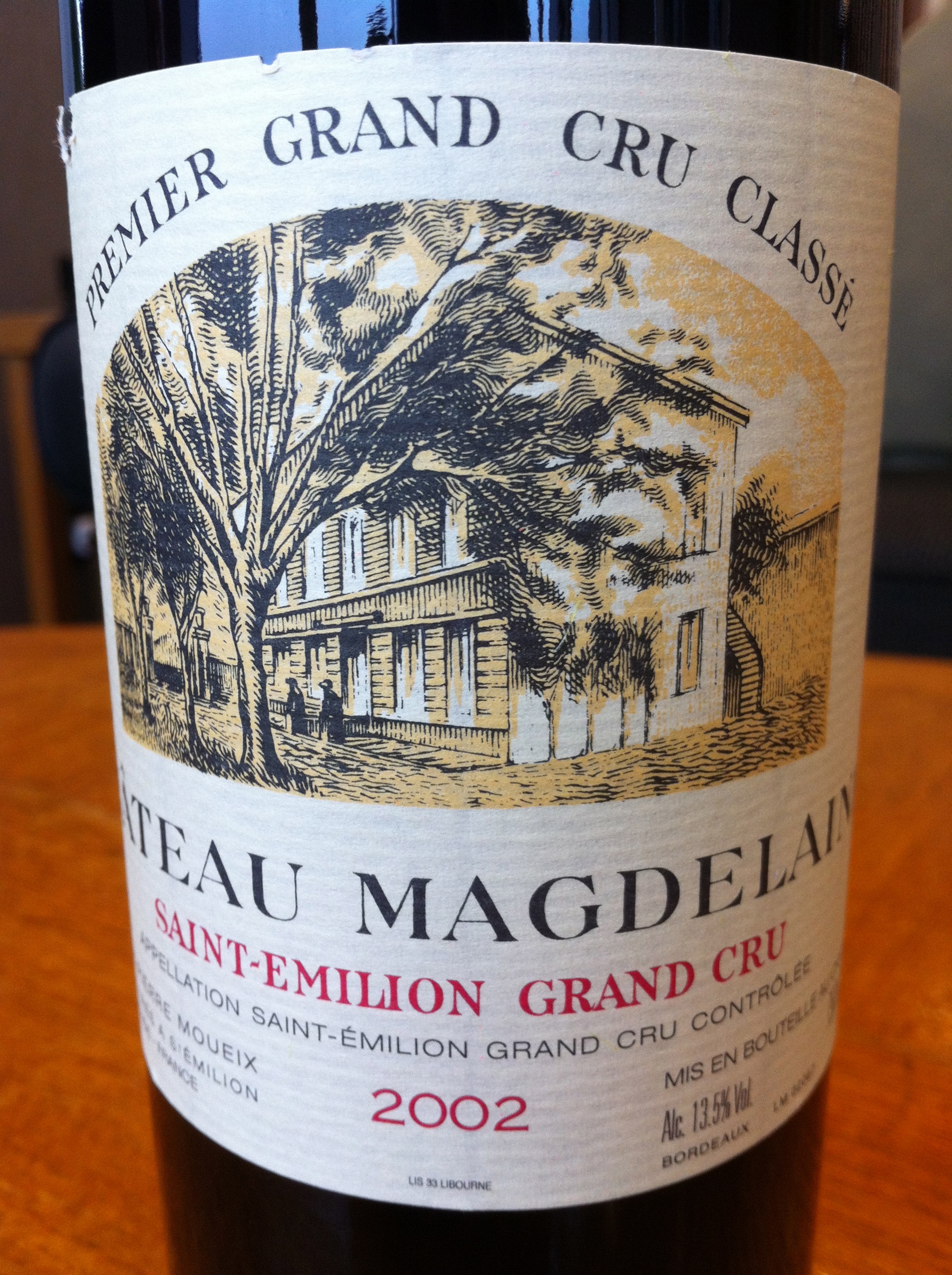 From St. Emilion, this property has a strong pedigree albeit from a lackluster vintage. 90% Merlot and the balance Cabernet Franc, this wine is smooth, balanced and ‘classic’ in style. It is not a powerful wine, but rather an elegant offering. The nose offers nice fruit, the initial attack is somewhat subdued. The mid-palate is balanced and delicious. The tannins are poking around, not obtrusive, yet holding it together quite nicely. The pro’s were all over the shop with this one- 92 from the boys at WS but a measly 15/20 from across the pond. At ten years of age, it is at a typical Bordeaux drinking window and I doubt it will get better. Another 3 years and it is over for this one. I would give it 3 stars. PS. if you remember my previous post about losing a bet- I won one back, and this was the payoff.