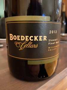 This Oregonian Pinot Noir is pale purple and see-through in the glass, as expected. On the nose I get a dose of cherry, some straw and strawberry. The palate is a touch spicy- ginger perhaps? The cherry flavors are very prominent but I also get red currants. The mid palate brings a shot of acidity that is really nice, not overpowering. The spice factor is no longer there, just red cherries and rhubarb. The finish is a juicy affair with the acidity really taking off. It’s not overpowering, but there’s a definite cut. The ending takes me back to the spice box- cinnamon and clove. Really tasty and still very young, it will drink well till 2025. 90 points from me for this $30 wine that gets 3 stars. I paired it with Turkey and stuffing! Salut….