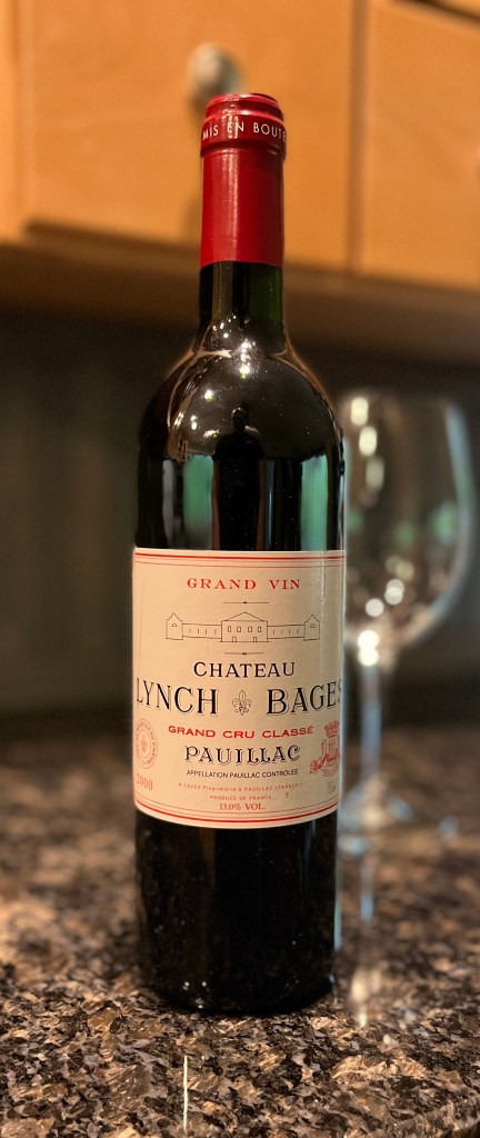 We are moving next month and wanted to have a special dinner with close friends- this was the opener. My last sampling of the 2000 Lynch Bages was 4 years ago. It has developed further and is fully mature now. Moxie said it was the best wine she has ever tasted. A Bordeaux blend of Cabernet Sauvignon, Merlot and Cabernet Franc.