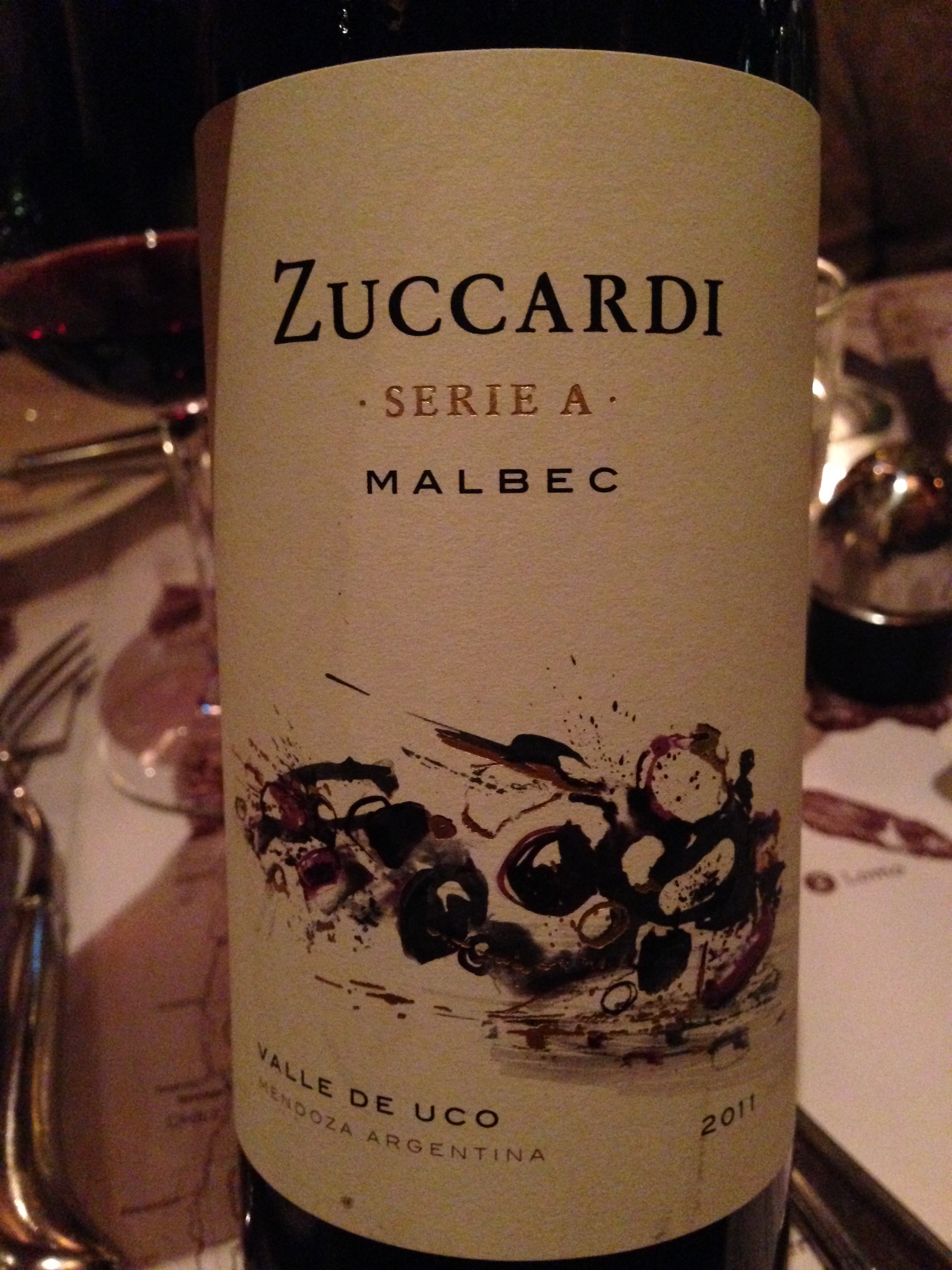 This is not the cheap $8 version from this winery, we ordered it off the wine list at an Argentinian Steak House. Paying about $35, I figure it should be about a $15 bottle. Anyway, it was so good that we ordered a second bottle after giving a Malbec a try. We started drinking this with the appetizers and it was great. Bluish fruits and a dark cherry component mixed with the oak and gentle acidity made it very pleasing. The wine is not complex, nor is it basic but it is very drinkable and we all enjoyed it. The second bottle came with the Filet Mignons and was a great match. Filet is low in fat and is very tender making it a good match for a slightly less tannic wine that is not as complex. Overall, a good choice as evidenced by the group’s vote for more of the same. I would give this 88 points and reckon it is a 4 star effort if it truly were $15. Salut….