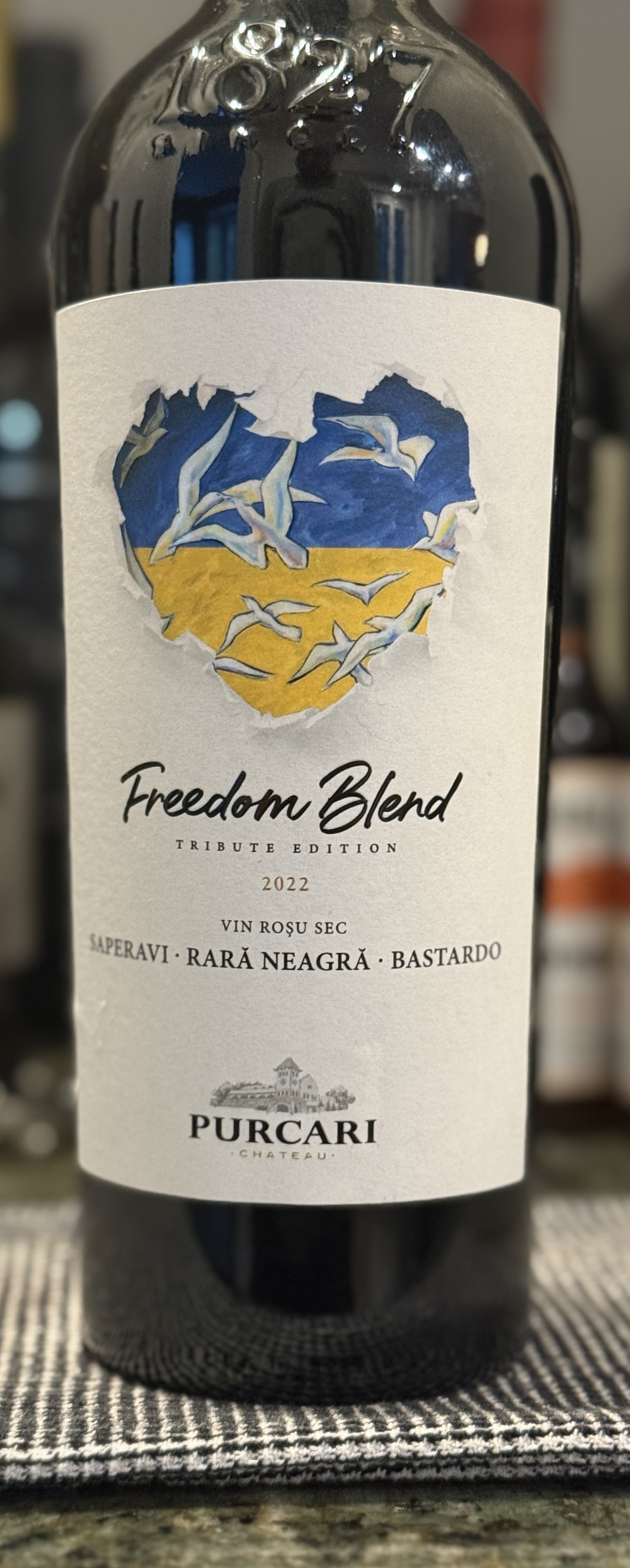 Deep purple colored, with moderate staining, and a high viscosity (14% ABV). The nose has medium (-) intensity aromas of blueberries, acai berry, a medicinal note, coffee, blackberry, black plum, dried leather, and pine wood. The palate is dry, with medium (+) acidity, a medium body, and medium (+) tannins that are starting to meld. Flavor intensity is medium and mirrors the nose. The finish is medium in length and the tannins turn powdery fine and lithe. It’s a delicious blend of 65% Saperavi (a teinturier grape), 20% Rara Neagra and 15% Bastardo. I chose it to pair with grilled Ribeye Cap steaks, it’s gonna be perfect. At $20, this 91 pointer gets 5 stars. Drink till 2030. Salut….