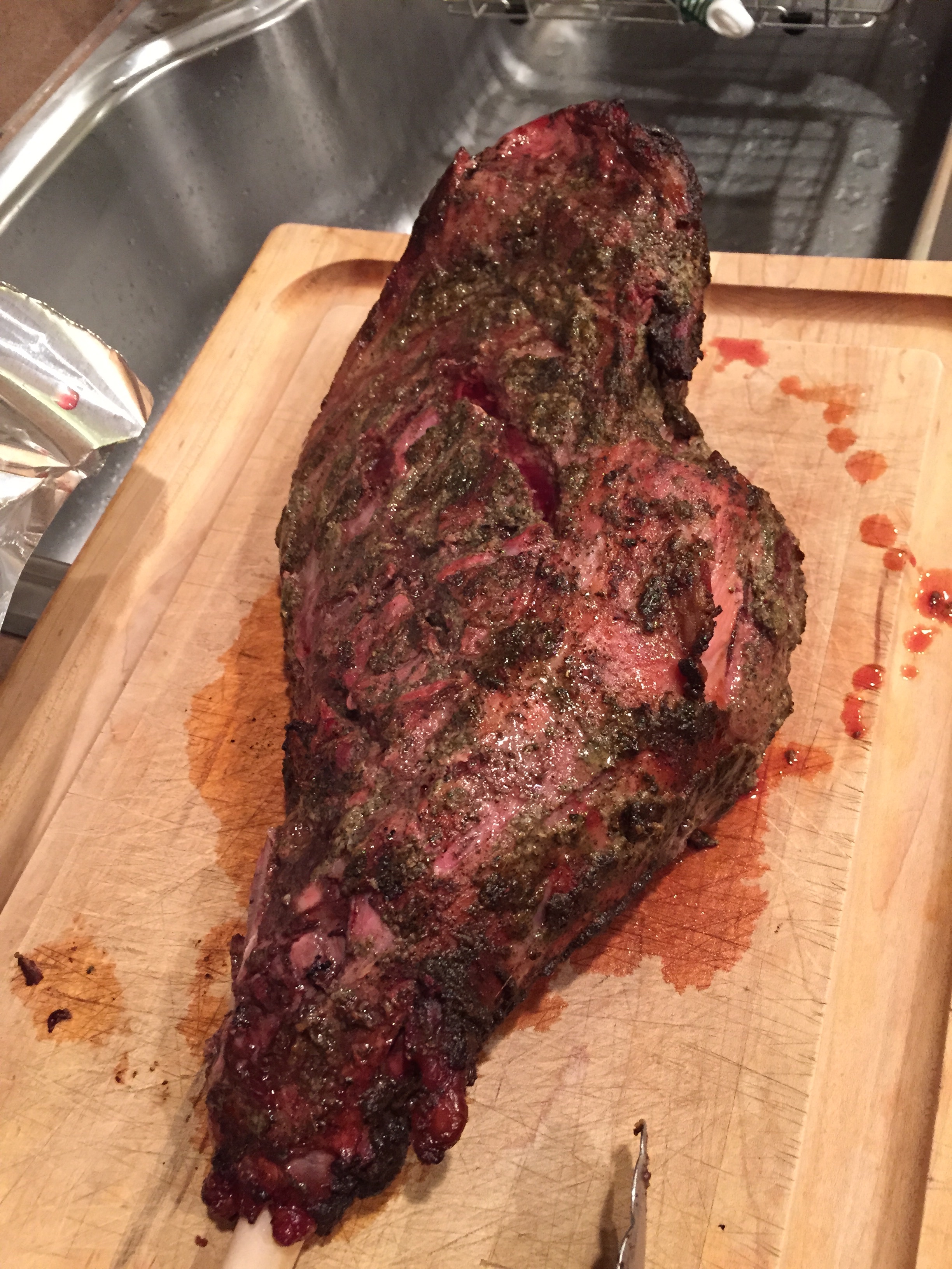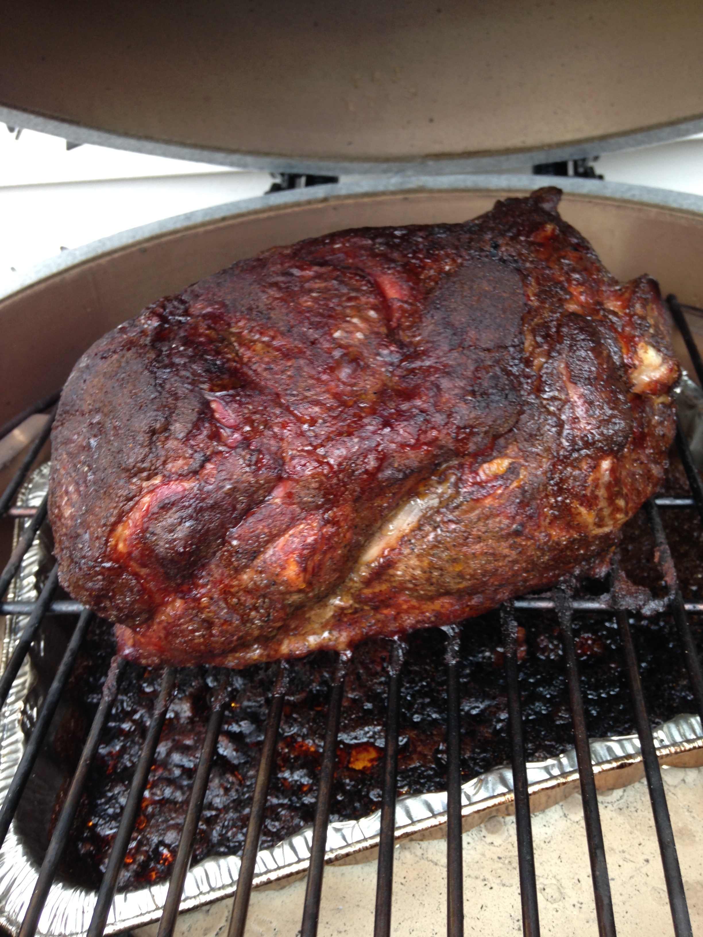 Moxie had saved every $5 dollar bill for the last year and used the cash to buy me the most amazing gift, the Big Green Egg grill. I immediately prepared the Chicken for a good old fashion slow cook with a bottle of peach wine shoved up it’s derrier and coated with salt, pepper and sage. The wood I used was cherry for the smoke and the charcoal was original hard wood chunks, old school… This grill is going to be fun and the learning curve steep but I am looking forward to it. I also slow cooked a standing rib roast, which I overdid- enough said.