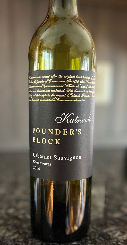 This was a wine we tasted at my WSET class. I brought the dregs home for another look-see as the wine had some very powerful aromas and flavors that I wanted to get my head around. Starting off it had some sediment in the bottle which is normal for an 8 year old bottle of Cabernet Sauvignon. In the glass it shows that age by way of a deep garnet hue. The nose has pronounced aromas of eucalyptus, blackberry, coffee, black plum, blueberry compote, vanilla, mint, leather and tobacco. It certainly is complex and showing some age as well as lingering youth. The palate is dry with juicy acidity and a great tannic structure. The rich fruit flavors are present coupled with oak nuance and tertiary notes but the coffee, mint and eucalyptus are the stars here. Medium (+) bodied, this wine is very balanced and the mouthfeel is fabulous- a touch dry here and there with some juiciness to keep your palate alive. The finish is quite a lengthy affair with black and blueberry fruit notes swirling with the tannin and acid- a nice way to end for this delightful wine. I am impressed by this $25 effort that gets 92 points. It needs to be drunk fairly soon- say by 2026 and gets 5 stars from me. Salut….