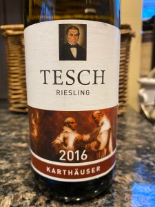 Pale straw/lemon colored with high viscosity (8.5% ABV). The nose has medium (+) intensity aromas of lemon zest, petrol, green apple skin, white and orange blossom, slightly underripe apricot, and a hint of wet slate. The palate is off-dry with high acidity and a medium body. The viscosity in the glass is obviously a result of the RS (residual sugar) and not the alcohol content. The flavors are slightly muted by the piercing acidity, even though it is tempered by the sugar. Citrus zest, green apple, apricot, and that stony mineral note make it through the powerful facade of this refreshing yet weighty wine. It’s an interesting dichotomy. I’m enjoying it very much as an aperitif to a Greek Chicken Souvlaki dinner, which has a lemon-based marinade. The finish is very interesting- a ying and yang of sweetness versus tartness. It lasts quite a long while. Loving this $12 bottle that gets a decent 89 point score from me and 5 stars. I will be stocking up on this porch pounder. It will pair beautifully with spicy dishes as well as Asian inspired cuisine. I think it has some cellaring capacity and would be interested to hide a few bottles for extended periods, checking every so often on the development. Yummy. Salut….