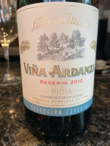 A beautiful reddish shade of purple in the glass. The nose is fresh and shows off raspberry, mint and red currants. The palate has red fruits and delightful tannins- juicy. There is a minerality to this wine to go with its cutting approach. It sure is mouth watering. Currants, pomegranate and a touch of that Spanish creosote all come together for me. The finish turns a little more earthy and that Rioja garrigue comes in to play. This is a nice wine with very precise flavors and a tannin/acid balance. The finish is a little short and that will cost it a point but it’s really enjoyable and I would pair it with pasta, beef stew or grilled garlic chicken. Drink till 2028. 90 points and 5 stars for this $15 Tempranillo. Salut….